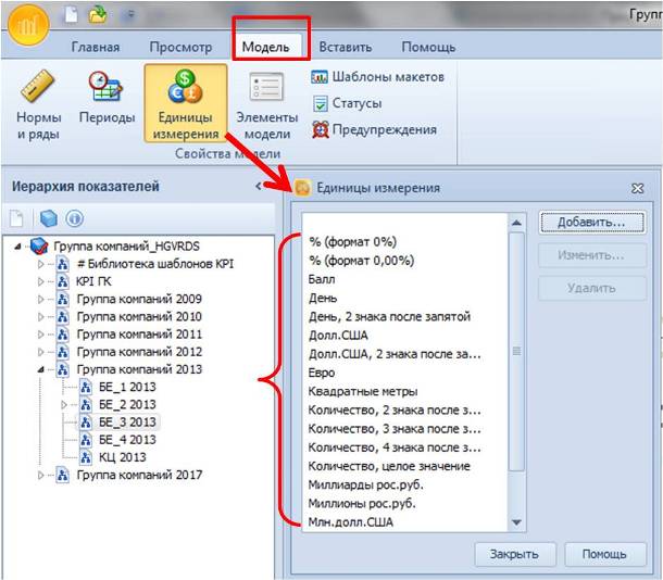 Рис.3. Настройка Визуализации Элементов Модели Целей Показателей Самый простой справочник – справочник единиц измерения показателей, см. рис.4.