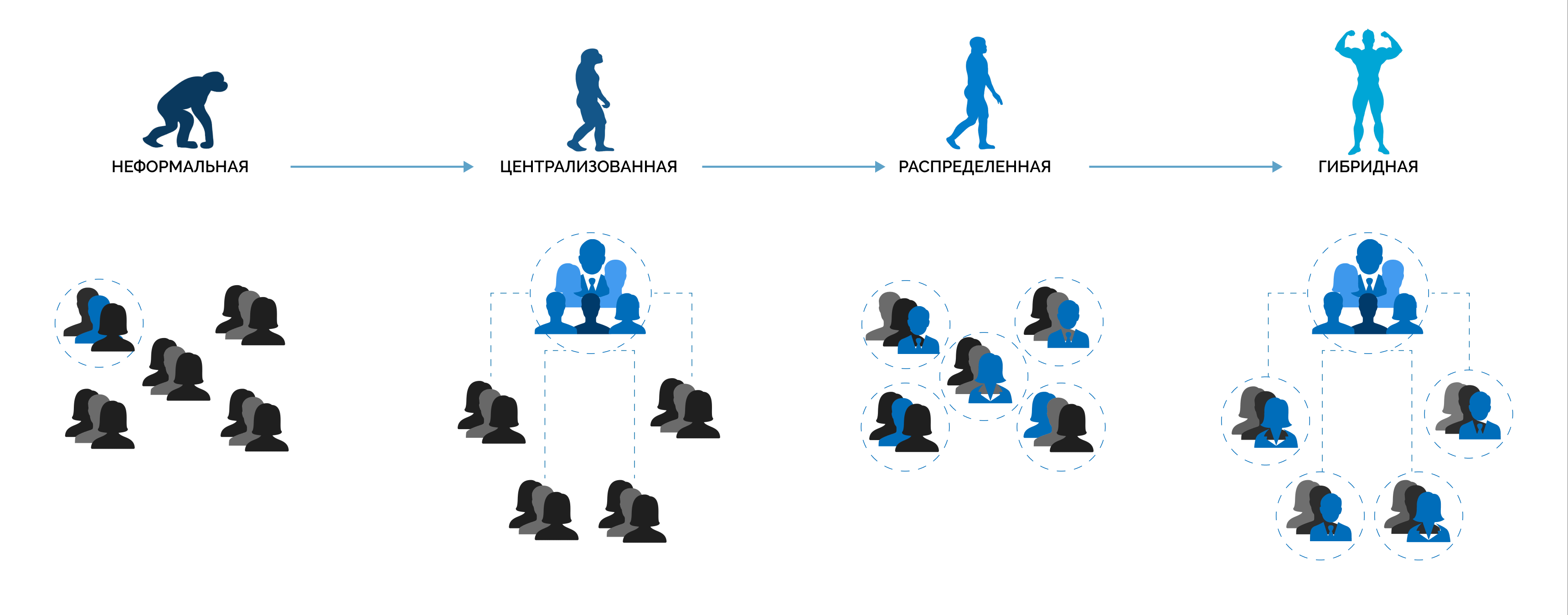 Здесь наступает четвертый этап эволюции в управлении ЦТ - гибридная модель.