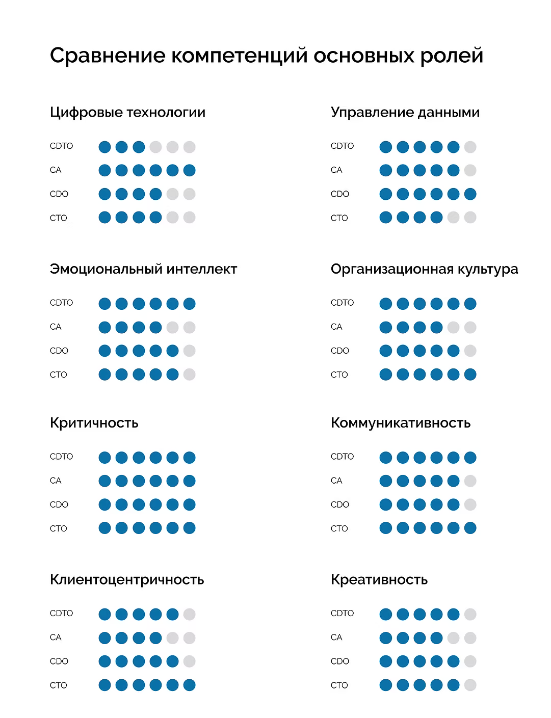 Если оценивать функционал по теории Адизеса, для CIO важны А (администрирование) и Р (производство) функции, а для CDTO – Е (предпринимательство) и I (коммуникация).