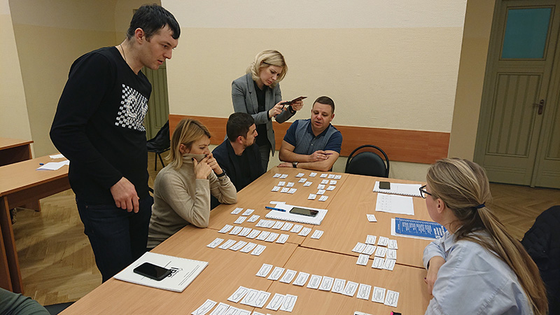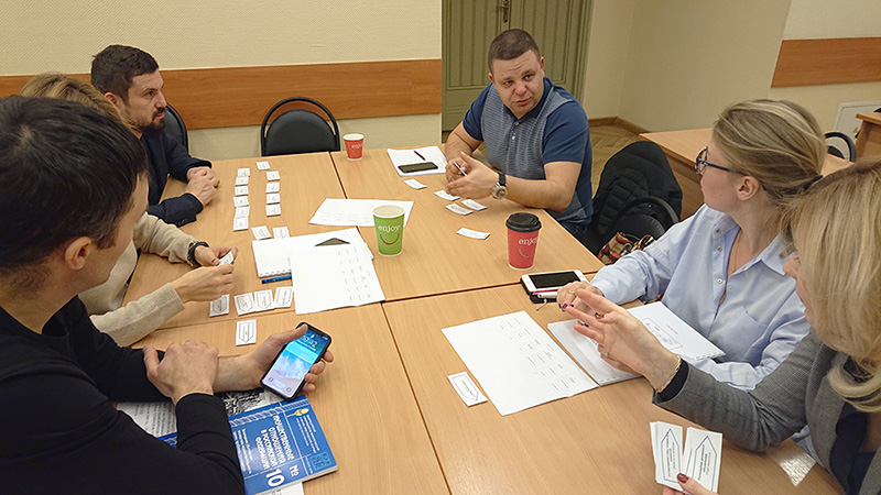 Мы проводим необходимое количество встреч с руководителями верхнего уровня, определяем функциональные процессы, готовим сценарий и модерируем игру. Так же можно провести игру в рамках 1-дневного тренинга по процессному управлению для топ-менеджмента.