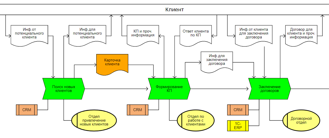 Такой подход дает возможность создавать модели верхнего уровня без перегрузки информацией. Но в тоже время можно четко определять границы процессов по входам и выходам, что важно с точки зрения руководителей компании и, в целом, для успешного внедрения системы управления бизнес-процессами компании.