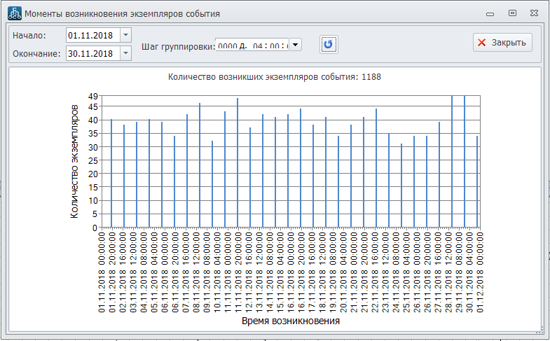 На рис. 2 показана интенсивность запуска процесса (нагрузка на процесс). В месяц поступает около 1200 оперативных заявок на обработку. Фактически, заявки могут готовиться в любое время, но процесс запускается только в период с 16 до 18-00 ежедневно. В другое время заявки просто не рассматриваются.