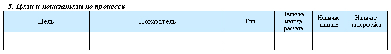 Результатом такого анализа являются выявленные ключевые проблемы и ограничения, рабочий план совершенствования процесса, утвержденный Генеральным директором. В следующем разделе мы рассмотрим возможную структуру карточки бизнес-процесса, которая должна заполняться каждым руководителем подразделения при выполнении системного анализа своих процессов. 3. Карточка бизнес-процесса Предлагаемая вниманию читателя «карточка бизнес-процесса» содержит 10 разделов: 1. Владелец процесса. 2. Выходы и потребители процесса. 3. Входы и поставщики процесса. 4. События. 5. Цели и показатели по процессу. 6. Ограничения. 7. Технология выполнения процесса. 8. Ресурсы процесса. 9. Риски. 10. Графические схемы процесса. Рассмотрим назначение каждого из этих разделов. На рис. 1 показаны разделы 1-4. В первом разделе приводится краткая информация о владельце процесса – руководителе, отвечающем за выполнение и результаты процесса. Рис. 1. Разделы 1-4. Во втором разделе необходимо указать всех потребителей (клиентов) и продукты/услуги, которые они получают. Клиенты сгруппированы по двум типам: внешние и внутренние. При заполнении данного раздела важно выявить и обсудить ценность, которую представляют продукты/услуги подразделения для внешних/внутренних клиентов. В разделе 3 должна быть представлена информация о поставщиках процесса и соответствующих входах (продукты/услуги, используемые при выполнении процесса). При заполнении раздела 4 необходимо идентифицировать инициирующие и завершающие процесс события. Определение входов/выходов и инициирующих/завершающих событий позволяет руководителю четко определить границы процесса. Рис. 2. Раздел 5. В разделе 5 необходимо описать существующие цели и показатели для управления процессом. В соответствии с методическим подходом (см. статью «Процессное управление: границы применимости») показатели могут быть следующего вида: