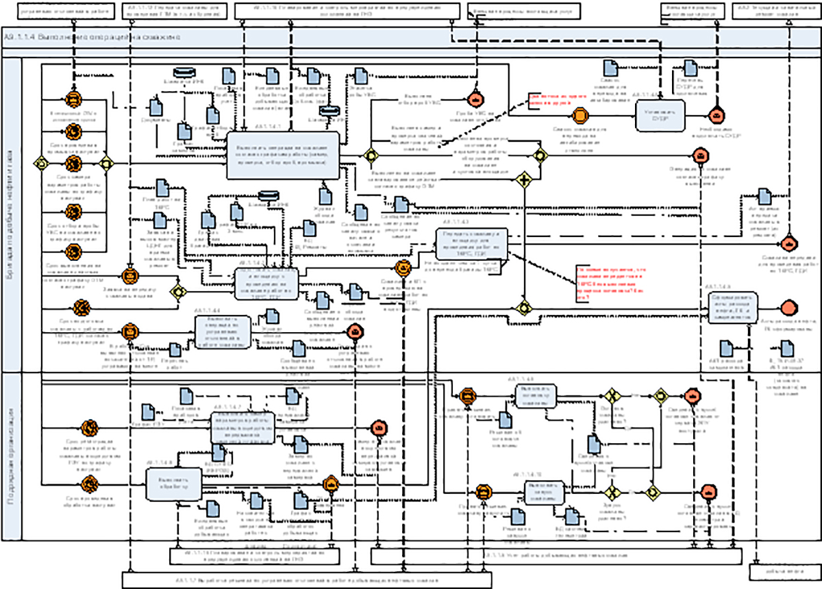 Рис. 2. Пример запутанной схемы в нотации BPMN (размытие выполнено специально).