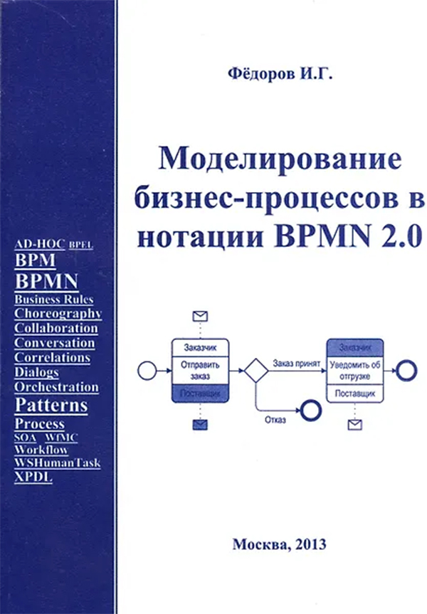 В книге рассмотрены вопросы создания исполняемых моделей бизнес-процессов в нотации BPMN 2.0. Показаны примеры использования нотации для моделирования процессов протекающих внутри одной организации, а так же процессов межорганизационного взаимодействия, возникающих, например, при реализации электронной коммерции. Рассмотрено моделирование следующих видов диаграмм: схем оркестровки, взаимодействия процессов, диалогов, процессной хореографии. Предлагаемое издание полностью покрывает все типы моделей, реализуемых с помощью нотации BPMN. .Книга предназначена для широкого круга специалистов, занятых моделированием бизнес-процессов. Она окажется особенно полезной тем из них, которые владеют приемами аналитического моделирования бизнес-процесса и хотели бы перейти к разработке исполняемых моделей.