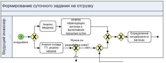 Другой пример – «Ежедневно» (см. рис. 4). Так же, часто используют граничные события-таймеры, в названии которых указывают нормативную длительность выполнения процесса. Но при этом данный таймер не прерывает выполнение операции и не передает управление на другую операцию процесса.