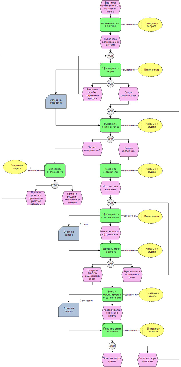В целом, конечно, нотация eEPC, как и «Процедура», безнадежно устарела. Особенно с точки зрения использования моделей процессов для настройки BPM-систем.