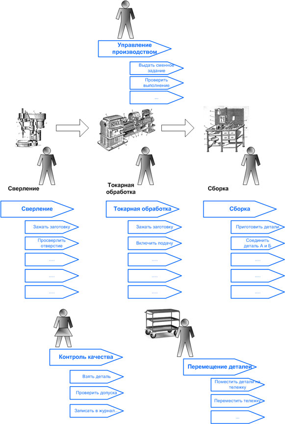 Рис. 3. Производство изделия. Более полная картина процессов.