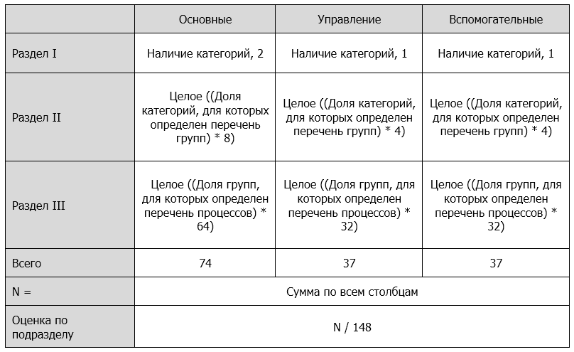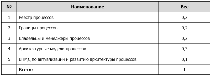 Таблица 1. Подразделы для оценки раздела «Архитектура бизнес-процессов»