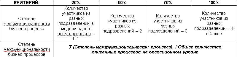 Интереснее вопрос со степенью межфункциональности описываемых процессов. Предлагается испытать в деле следующую шкалу: