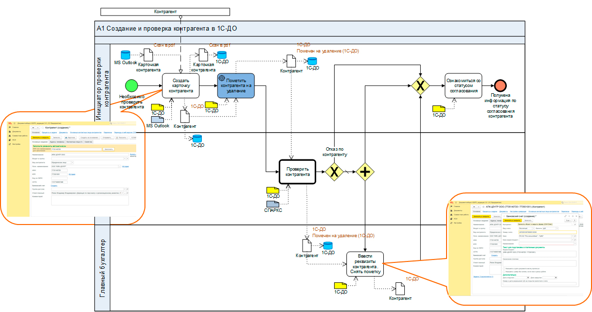 Нужны ли эти сценарии, если уже есть автоматизированный маршрут в 1С-ДО? Да, нужны. Они показывают задачи, которые должны выполнить участники бизнес-процесса, в том числе «оффлайн».
