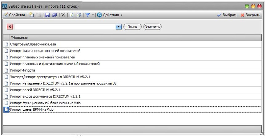 Пакетом импорта удобно пользоваться для загрузки готовых схем бизнес-процессов из MS Visio в Business Studio.
