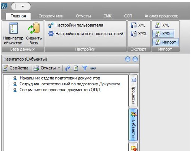 Чтобы в Навигаторе в закладке «Субъекты» отобразились импортированные элементы, нужно нажать кнопку «Обновить дерево».