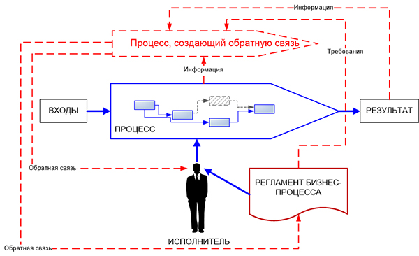В общем виде, рассматриваемую ситуацию можно представить схематично на рис. 2. Показан некоторый процесс, который исполнитель выполняет в соответствии с регламентом. При отсутствии процессов, создающих обратную связь в случае отклонений выполняемого процесса от требований регламента, у исполнителя не возникает стимулов для изменения существующего поведения.