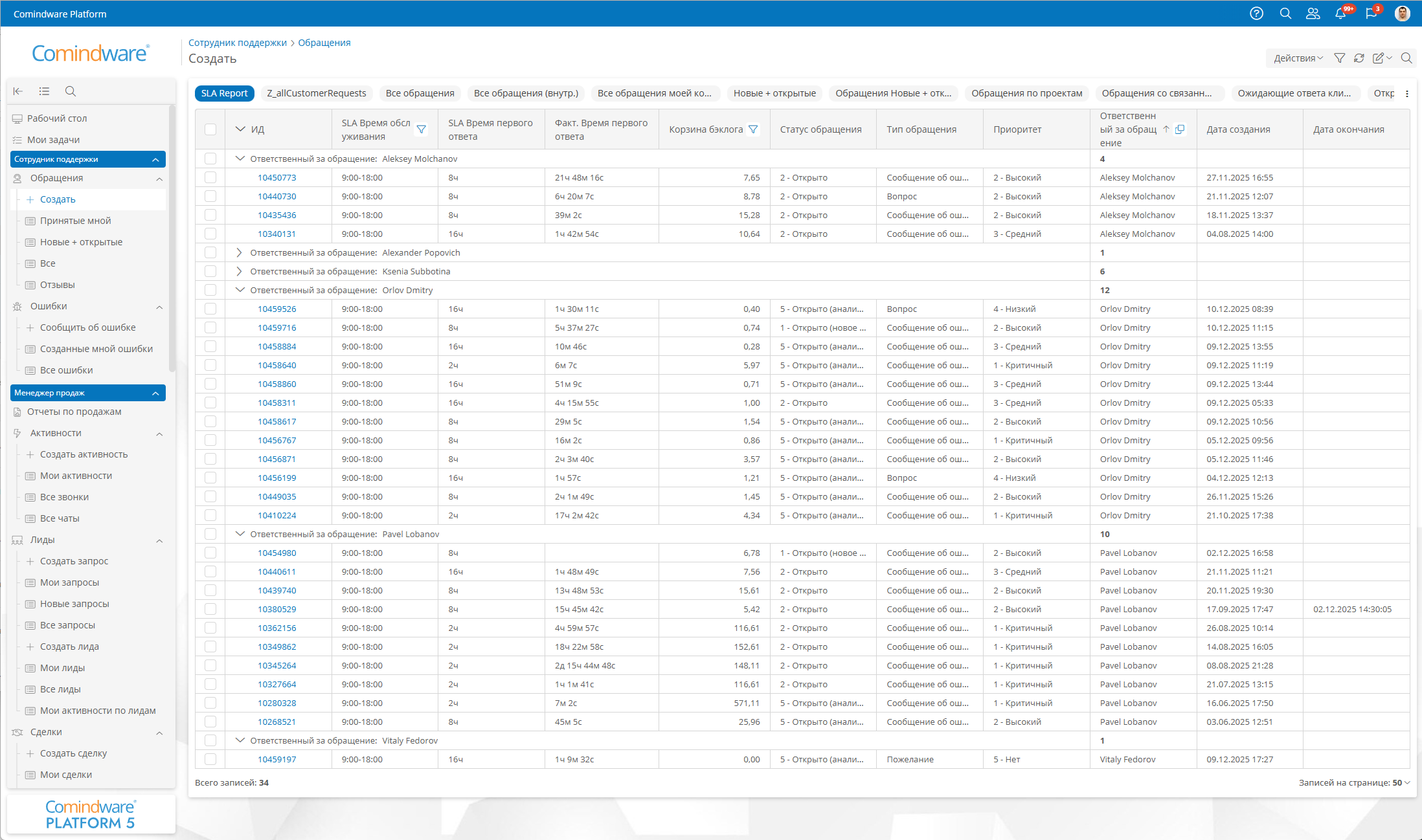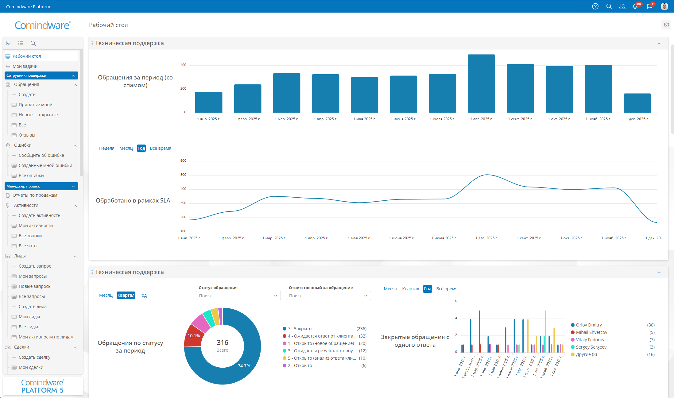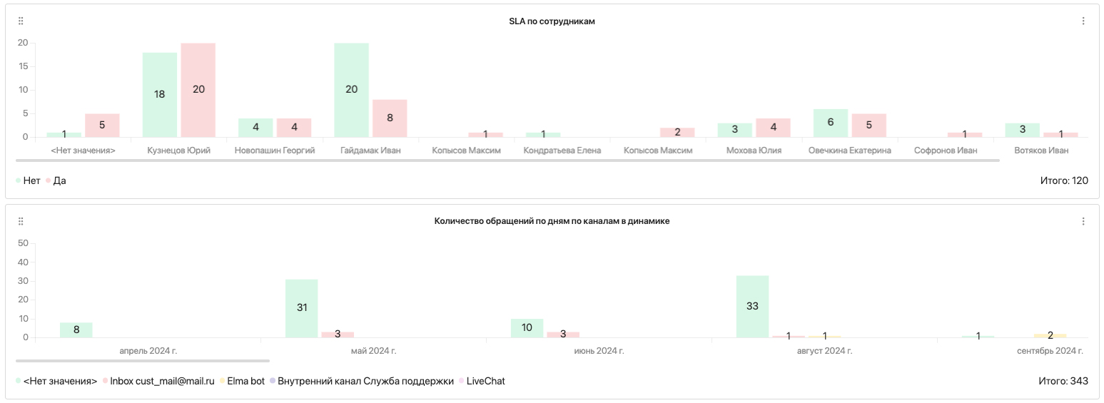 Удобным инструментом мониторинга OLA являются системы класса BPM. На рис. 5 и 6 показаны примеры панелей управления, разработанные в Elma-365.