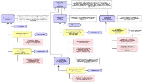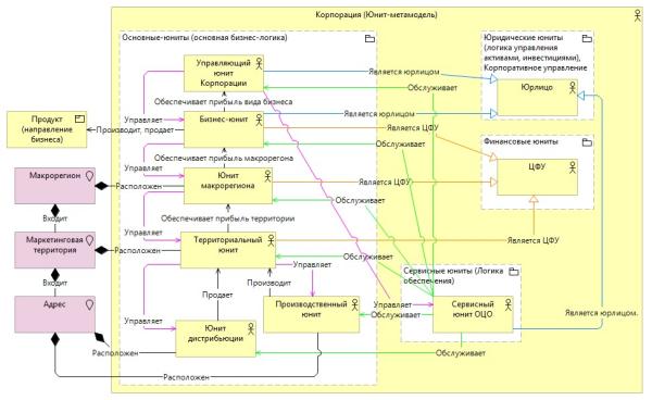 В моей статье рассматривается проблематика построения корпоративной модели в крупных компаниях. Часто даже при наличии в компании практики работы с бизнес-процессами в рамках архитектуры процессов нет возможности отразить все аспекты сложной корпоративной модели, либо процессная модель неудобна как средство визуализации конечным потребителям от бизнеса, руководителям или даже собственникам компании. Также существует влияние других элементов корпоративной модели на архитектуру процессов, без учета такого влияния качество самой архитектуры процессов будет ниже.