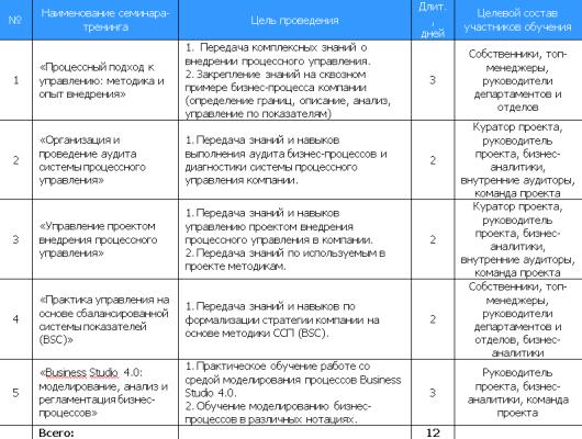 В статье В.В. Репина рассматривается цикл учебных программ в области процессного управления. Проведение семинаров-тренингов по этим программам может существенно повысить эффективность внедрения процессного управления в компании.
