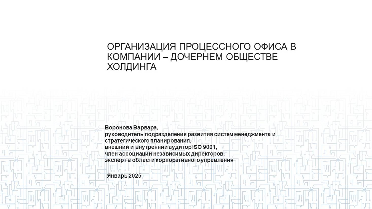 Доклад Варвары Вороновой «Организация процессного офиса в компании — дочернем обществе холдинга» на VI-ой ежегодной Январской конференции «Системная практика управления бизнес-процессами»-2025, 31 января 2025 года. В докладе раскрыт опыт создания процессного офиса в компании — дочернем обществе холдинга в области электроэнергетики. Какие были предпосылки создания и каким образом произошло объединение сотрудников в области стратегии, СМК и процессного управления в одном подразделении. Какие цели были зада...