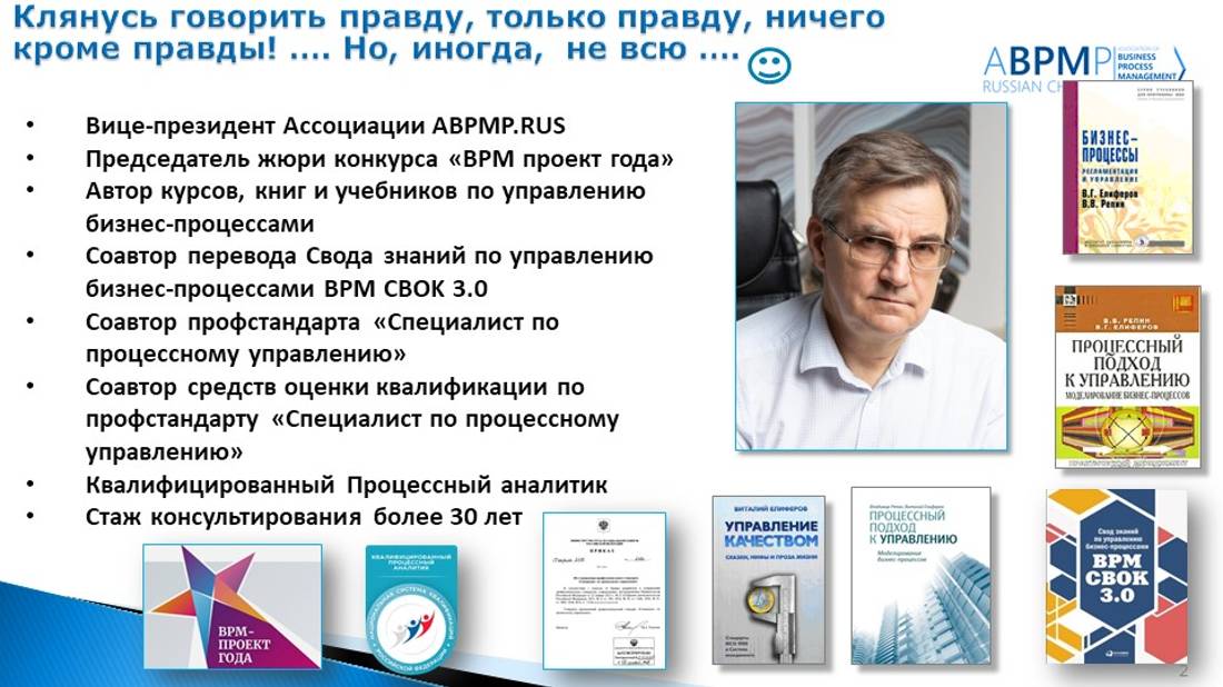 Архитектура бизнес-процессов: где и как искать кросс-функциональные бизнес-процессы? Выбор процессов для оптимизации: критерии и методы. Роль собственника, совета директоров, процессного комитета, процессного офиса. Точки входа в улучшения бизнес-процессов. Обязанности владельца процесса. Идея проекта. Определение целей и задач проекта. Формирование рабочей группы. Ролевая структура проекта. Анализ заинтересованных сторон. Стратегии работы с заинтересованными сторонами. Определение контекста процесса. Формирование плана проекта.Владимир Владими...