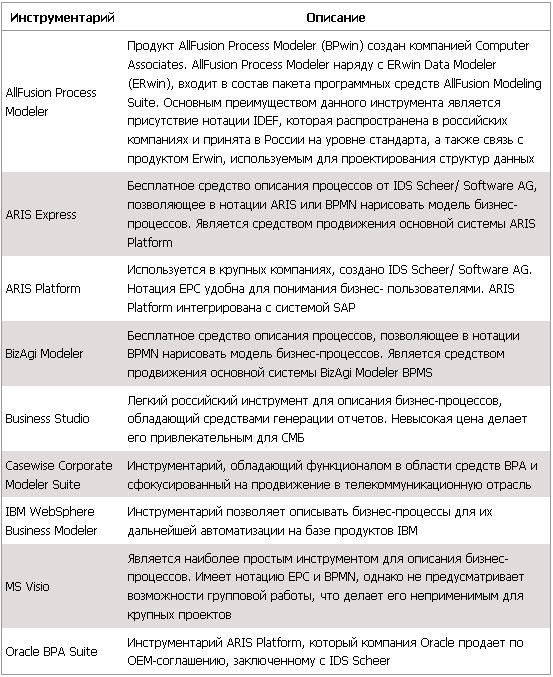 Инструментарий для описания бизнес-процессов
