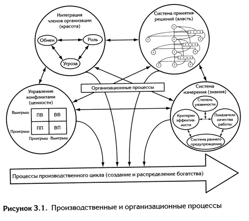 Диаграмма, приведенная на рисунке 3.1, демонстрирует взаимосвязанность власти, знаний, красоты, ценностей (организационных процессов) и производства (создания и распределения богатства).