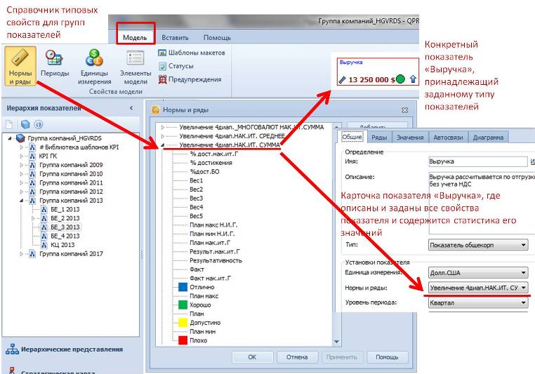 Рис.6. Чем полезна настройка типовых свойств показателей На рис.7 наглядно показана связь справочника типовых показателей (норм и рядов) с настройками конкретного показателя в карточке показателя, где по сути выбираются необходимые свойства из ранее сформированных справочников. В общем-то все просто.