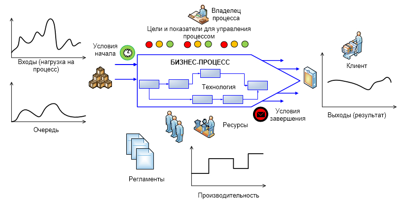 Используемая технология выполнения процесса и ресурсы (оборудование, люди) определяют производительность процесса – возможность преобразовывать определенное количество входов в выходы за единицу времени.
