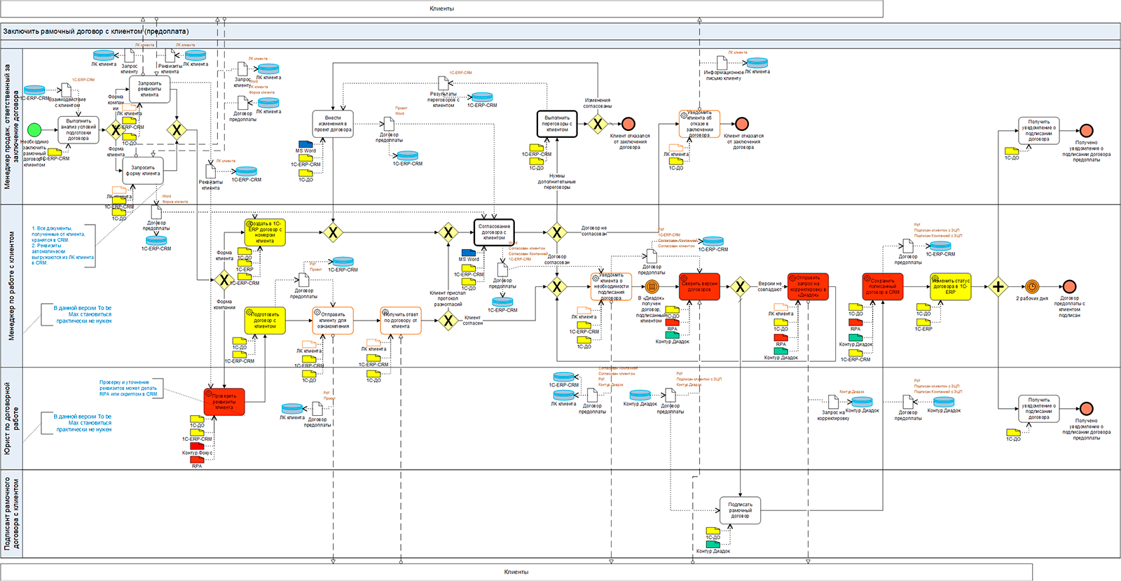 Рис. 3. Модель бизнес-процесса согласования договора с клиентом «To be Medium».