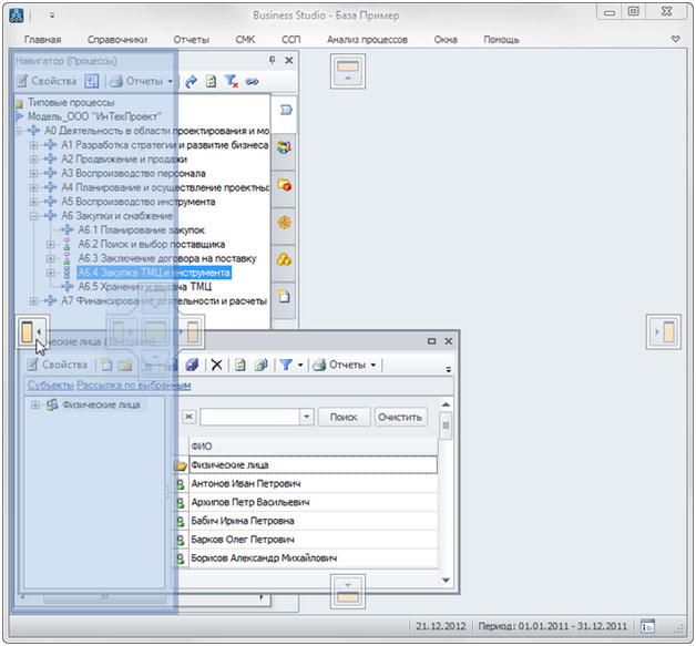 При разработке нового интерфейса основной задачей стало улучшение условий работы пользователей в системе. Для этого особенно важно было повысить понятность интерфейса, упростить вызов нужных функций, а также привести внешний вид программы к современным стандартам. Изменения в интерфейсе Business Studio 4.0 призваны обеспечить, в первую очередь, экономию времени для пользователя, а также сделать работу в программе комфортнее.