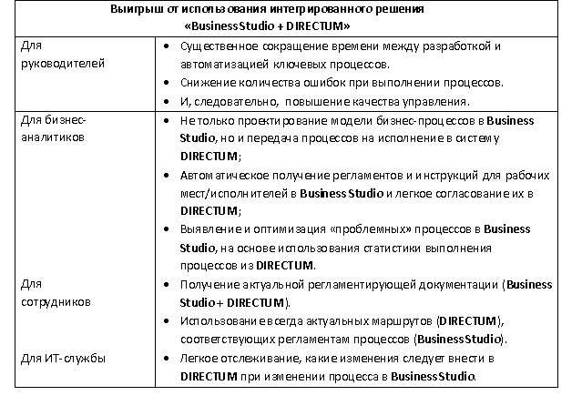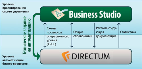 Рис.4. Схема взаимодействия систем в рамках интегированного решения «Business Studio + DIRECTUM»