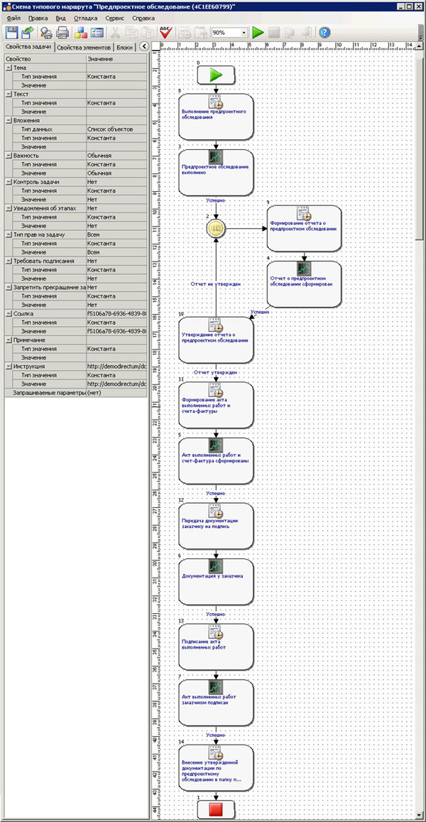 б) Рис.2. Диаграммы процесса: а) сформированная в Business Studio, б) после передачи в DIRECTUM Благодаря возможности быстрого и удобного перехода от модели непосредственно к автоматизации процессов формируется действительно комплексная система управления предприятием.