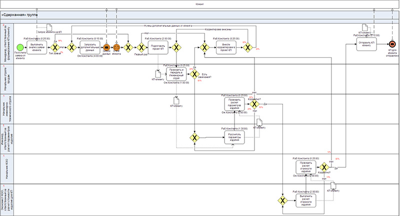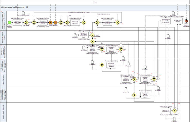 Рис. 1. Исходная схема процесса «Формирование КП клиенту».