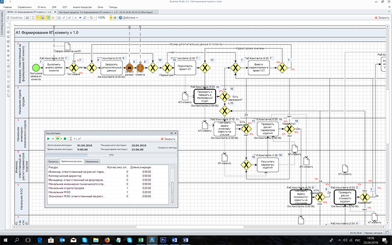 С использованием Business Studio можно создавать и использовать для учебных целей любые сложные модели сквозных процессов.