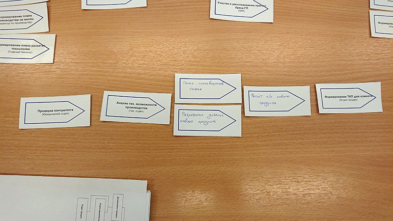 - определить, какие процессы являются чисто функциональными, и не вошли ни в один сквозной процесс (можно пометить карточки с такими процессами красными стикерами);