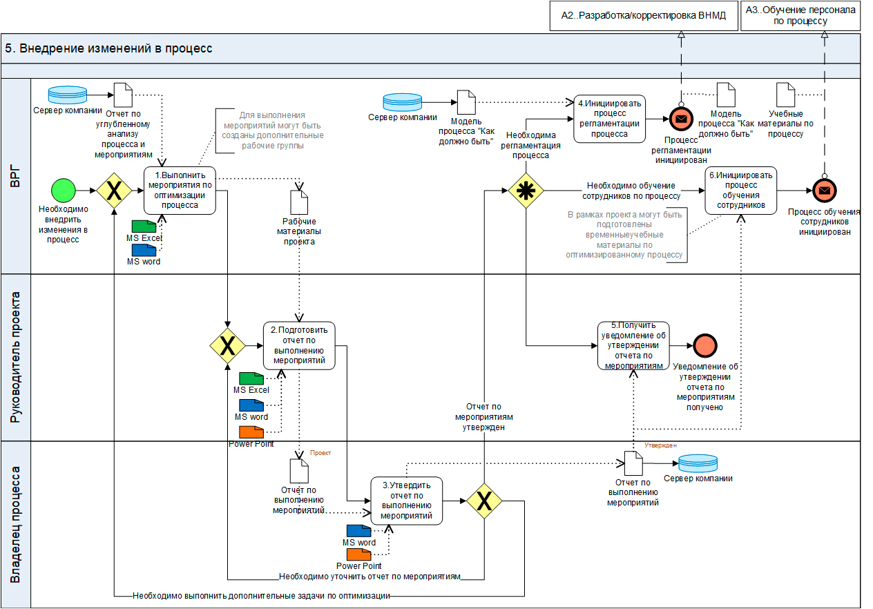 В большинстве случаев, ВРГ необходимо разработать модель процесса «Как должно быть» с учетом предложенных мероприятий по оптимизации (например, в Business Studio).