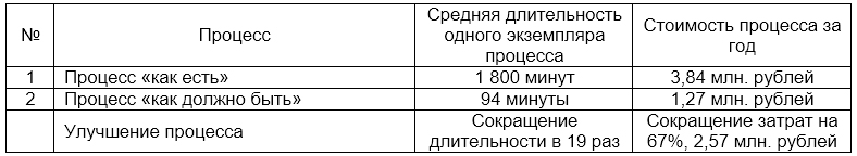 Таким образом, потенциальный годовой эффект от оптимизации процесса «Рассмотрение и согласование оперативных заявок» может составит 2,57 млн. рублей.