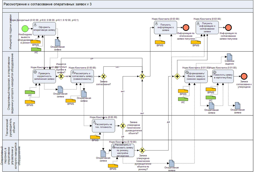Рис. 1. Диаграмма процесса «Рассмотрение и согласование оперативных заявок».