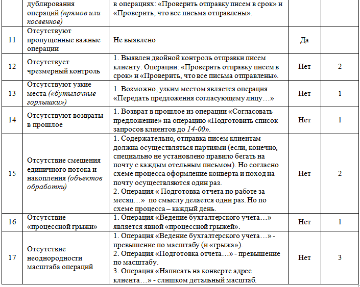 Как это ни странно, иногда на схеме процесса можно увидеть дублирование операций. Стоит обратить внимание на схожие по смыслу или почти одинаковые названия операций процесса. Иногда дублирование можно выявить, анализируя содержание операций и их результаты.