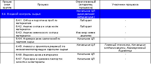 В таб. 4. Показан фрагмент системы процессов другой компании. Все процессы, за исключением 6.4.5. не могут быт названы «сквозными». Они практически полностью выполняются силами сотрудников лаборатории.
