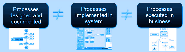 Во-вторых, существует риск, что окончательное решение не будет соответствовать ожиданиям бизнеса. Понятие «процесс» может быть интерпретировано как язык для обмена информацией и понимания, насколько требования бизнеса соотносятся с решением. Непоследовательность этого языка, вызванная слабоуправляемыми процессами начиная со стадии их моделирования до осуществления, часто ведет к неумелому управлению ожиданиями стейкхолдеров и тому, что окончательное решение не соответствует изначальным требованиям бизнеса. В итоге в рабочих группах возникают обходные пути для таких решений, которые разрушают связи между требованиями и процессом.