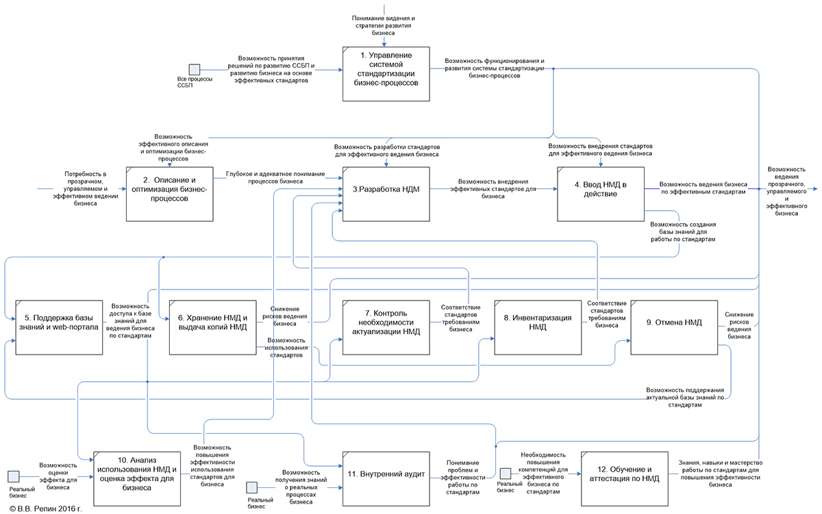 Кроме того, хочу отметить, что ССБП – это не ВСЁ, что нужно сделать для создания эффективной системы управления в компании. ССБП – это не модель системы управления в целом. Это только часть, подсистема для эффективной работы по описанию и регламентации бизнес-процессов. Прошу обратить на этот момент внимание.