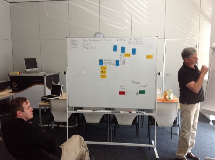 Далее представлен пример практической сессии, которую проводил Герхардом Штайн в Академии Metasonic, целью которой было изучить, как S-BPM работает на практике.