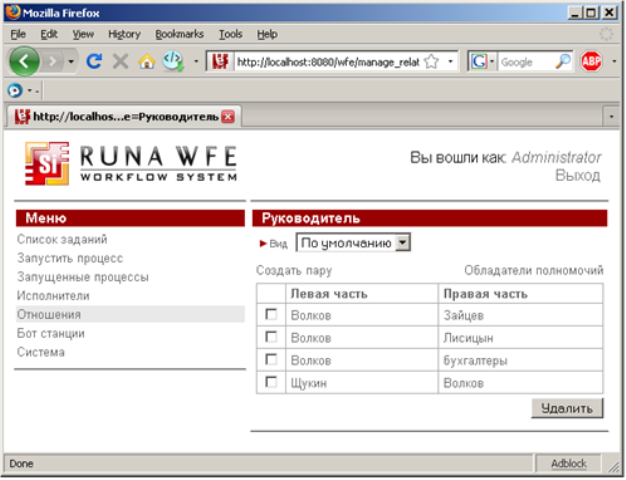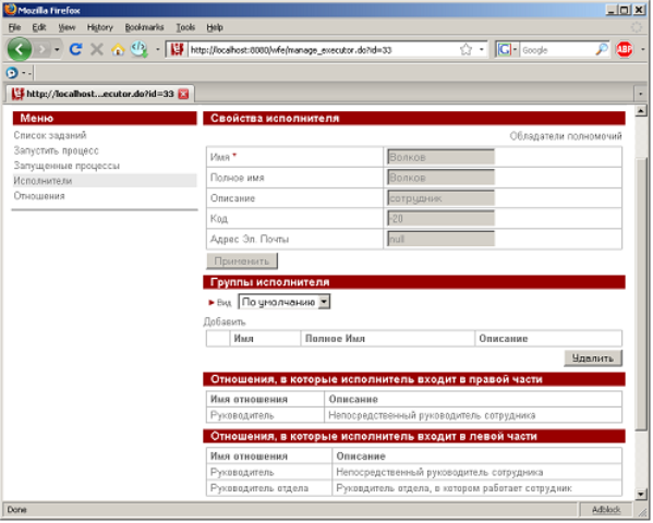 Задавать отношения перечислением всех определяющих его пар исполнителей не всегда удобно, так как таких пар может быть очень много. Для уменьшения количества вводимых данных в парах кроме исполнителей допускается использовать группы пользователей.