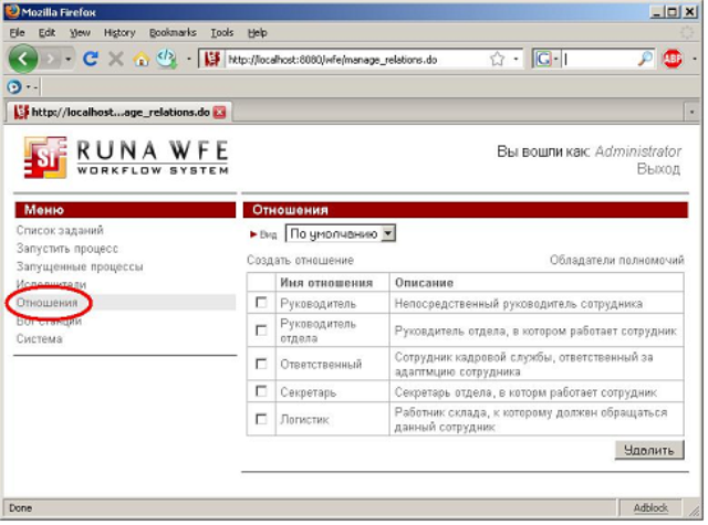В главное меню системы был добавлен еще один пункт - Отношения (в английской локализации - Relations).