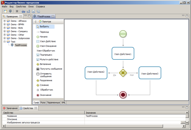 Для изображения элементов графа процесса применяются различные графические нотации (наборы графических элементов, соответствующих различным элементам схемы бизнес-процесса). Наиболее распространены BPMN и UML - нотации , являющиеся международными стандартами.