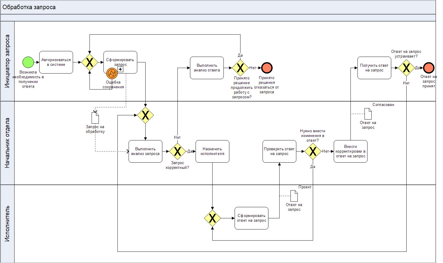 На рис. 3. представлена схема процесса в нотации BPMN. Это тот же самый процесс, который был представлен выше в нотациях «Процедура» и eEPC.