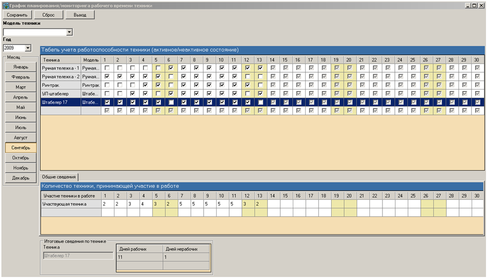 - ведение табеля работников и плана профилактических работ для погрузо-разгрузочной техники;