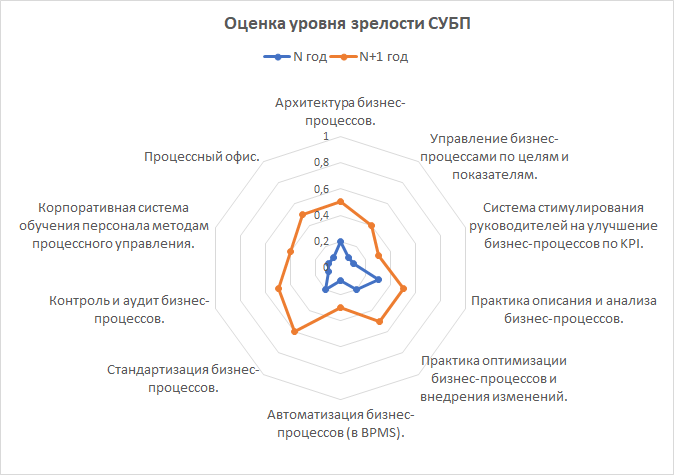 Рис. 2. Диаграмма оценки зрелости СУБП в N-ом году и план на N+1 год.