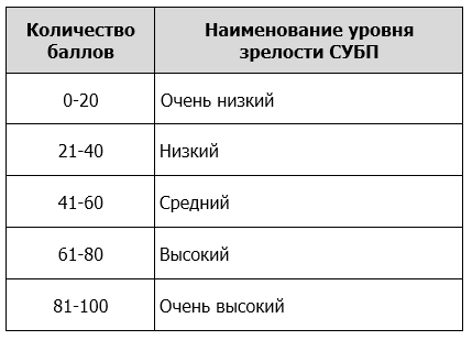 Таблица 6. Уровни оценки зрелости СУБП.