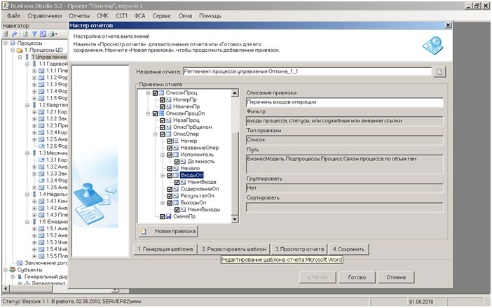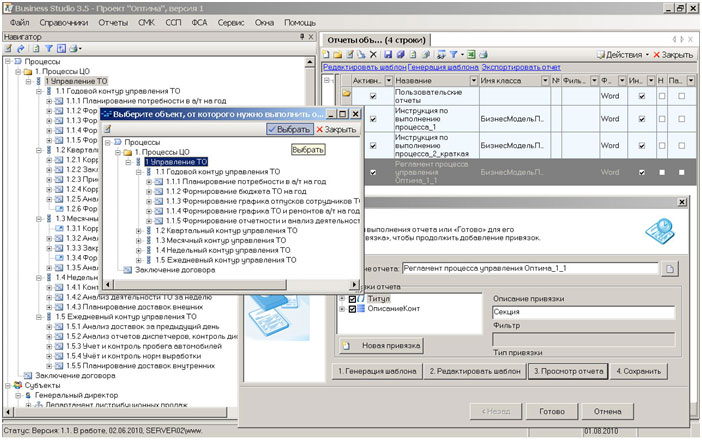 Рис. 2. Мастер отчетов Business Studio. Разработка регламента управления на 3-х уровнях.